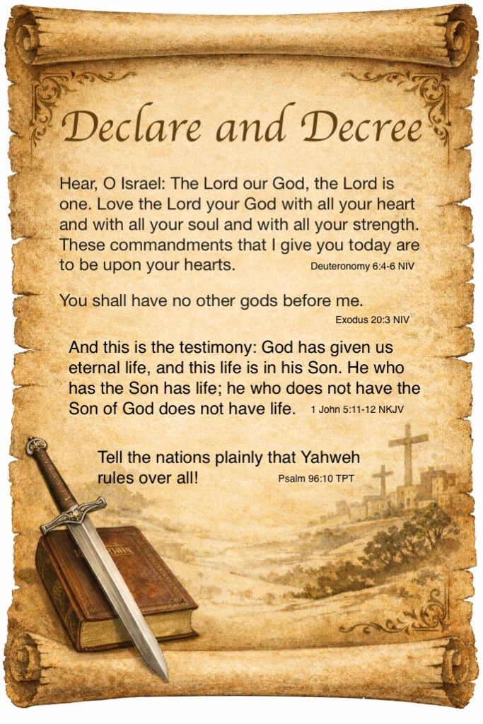The first pillar in Islam is a confession of faith called the Shahada. It states, “I bear witness that there is no god but Allah, and I bear witness that Muhammad is His messenger.”